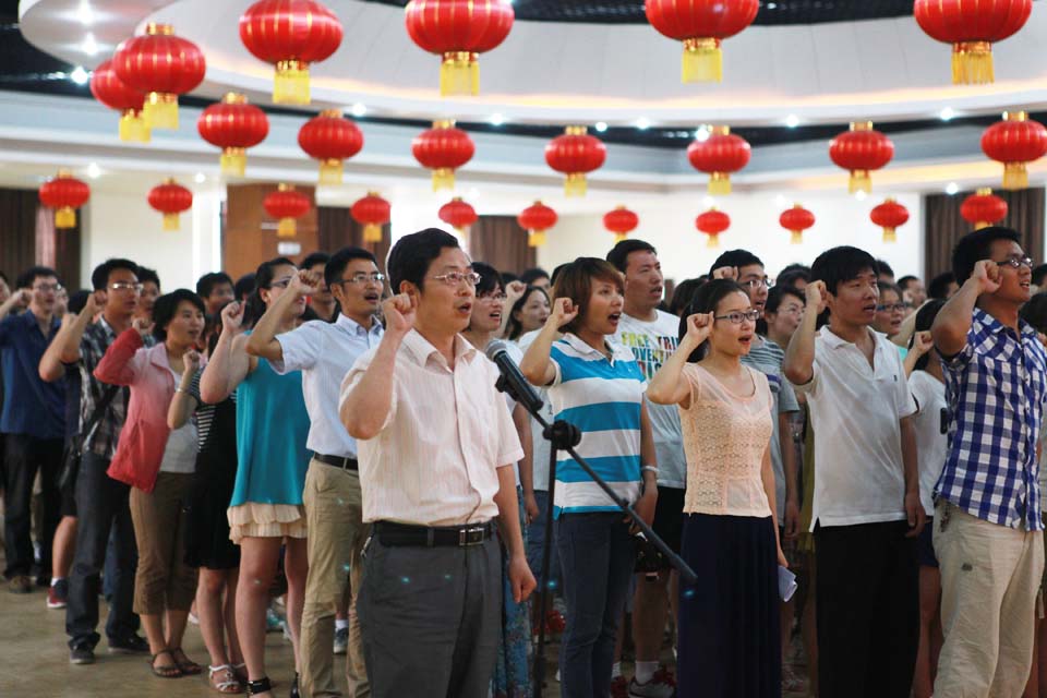 入党宣誓仪式在庄严的《国际歌》中开始。王彦杰宣读参加宣誓的477名预备党员名单,王金文带领全体预备党员宣誓。预备党员们整齐的队伍,响亮的誓言,笔直的身姿展示了他们对党坚定的信念和永不更改的忠诚。