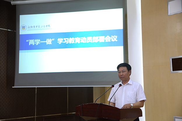 他指出,开展“两学一做”学习教育,是深化党内教育的重要实践,是加强党的思想政治建设的重大部署,也是推动全面从严治党向基层延伸的有力抓手。学院各基层党组织和全体党员要认真学习习近平总书记重要指示精神,把思想统一到中央的部署和要求上来,通过开展学习教育,进一步增强政治意识、大局意识、核心意识、看齐意识。他着重强调: