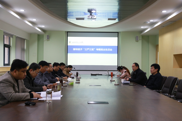 王志凯代表学院领导班子作党的群众路线教育实践活动整改情况报告,作领导班子“三严三实”对照检查发言。他从领导班子遵守党的政治纪律、政治规矩和组织纪律,落实党风廉政建设主体责任和监督责任,落实中央八项规定精神等方面做了深入对照检查,认真梳理查摆了领导班子在严于修身、严于律己、严于用权、谋事要实、创业要实、做人要实等方面存在的问题,对问题产生的思想根源进行深入剖析,并明确指出整改方向。