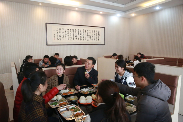与贫困大学生一起就餐,鼓励同学们脚踏实地做学问