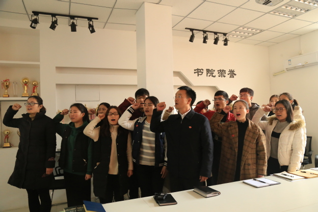 组织生活会后,在裴春亮的带领下,同学们重温入党誓词。