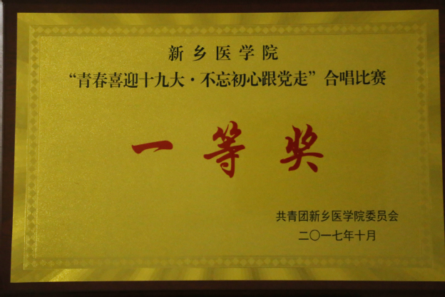 10月12日晚,新乡医学院“青春喜迎十九大•不忘初心跟党走”合唱比赛在体育馆内举行。新乡医学院领导领导陈建国、郝红军、张现周、郭志坤、陈清江出席本次比赛并颁奖。学校各职能部门、院(部)负责人以及近3000名师生代表观看了比赛。我院在此次比赛中荣获一等奖、优秀组织奖。