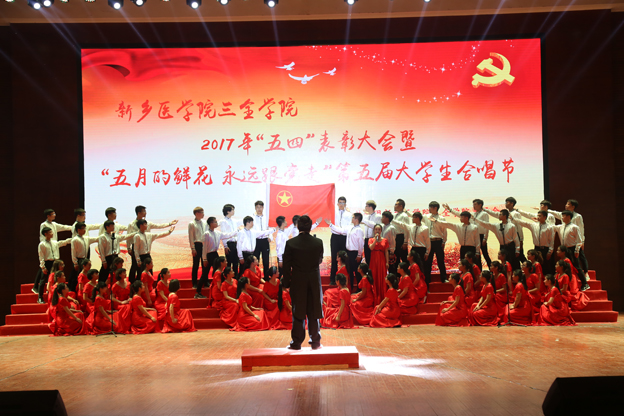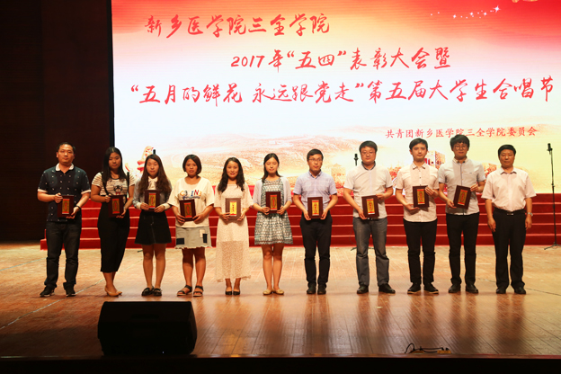 在庄严的中国共产主义青年团团歌中,2017年“五四”表彰大会拉开了序幕。本次表彰大会共表彰河南省第十五届大学生科技文化艺术节系列竞赛获奖作品(个人)和优秀组织单位,新乡医学院三全学院2015-2016学年优秀学生社团,新乡医学院三全学院2016年大学生“三下乡”暑期社会实践优秀团队、先进个人,新乡医学院三全学院2017年“学雷锋志愿服务主题活动月”先进集体、先进个人,新乡医学院三全学院第五届“挑战杯”大学生课外学术科技作品竞赛获奖作品,新乡医学院三全学院2016-2017学年共青团先进集体和先进个人等六类奖项,院领导为获奖单位及个人进行了颁奖。