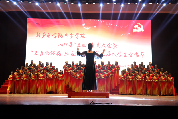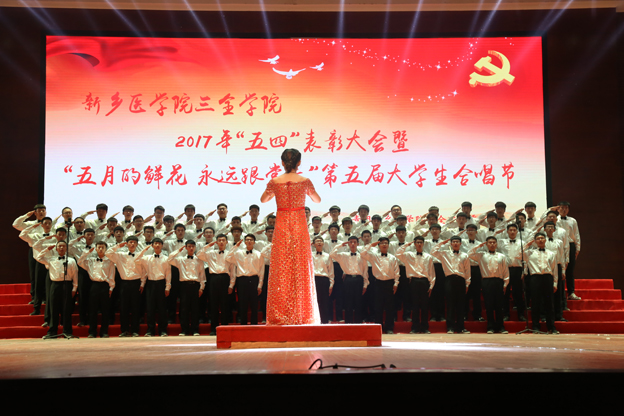 5月23日晚,我院在平原校区闻德礼堂举行2017年“五四”表彰大会暨“五月的鲜花永远跟党走”第五届大学生合唱节。我院党委书记王志凯,党委副书记王金文,党委副书记张钢,教务长杜华贞、后勤总监马波、学务长邱永建出席,相关职能部门、各书院负责人及千余名学生参加。