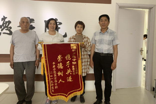 崇德书院党总支从全体师生党员中选拔优秀党员代表前往平原示范区宏伟小学开展“建功新时代 青春心向党”支教活动,带领青少年学生一起学习党的基本知识和理论。支教活动完成后,宏伟小学赠送“携手共进 崇德树人”锦旗以表感谢。